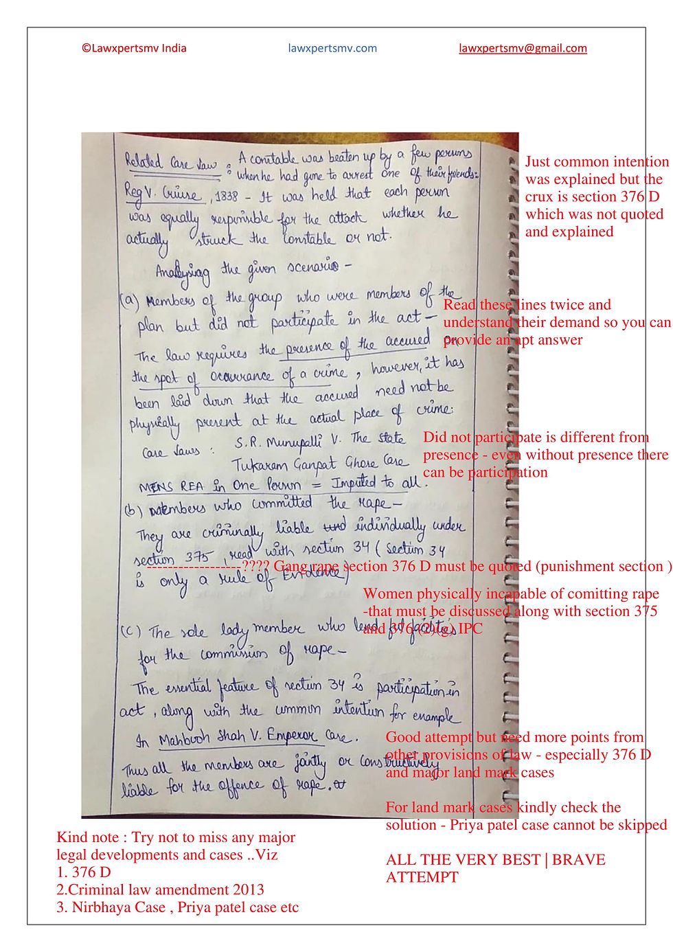 Note : Dear aspirants - our sincere thanks for writing the answers, kindly take the comments in constructive way . We are here just to facilitate your preparation ALL THE VERY BEST